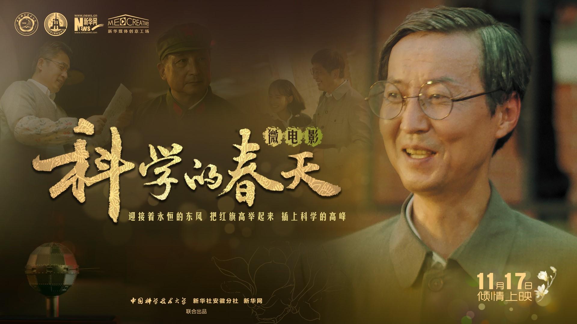 首映式将于 20221117日下午16:00在东区活动中心五楼报告厅举行,欢迎感兴趣的师生到场观看。首映式结束后,学校新闻网、官方微信和新华网将及时在线发布《科学的春天》微电影线上高清版本,欢迎师生届时关注收看。