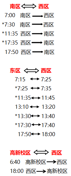 3、为给我校考生和考务人员提供力所能及的交通服务,23-24日校园班车除保持正常双休日加注“*”班次外,汽车队将调剂其他车辆,根据考试时间增开了部分班车,考试前后时段车辆安排具体为: